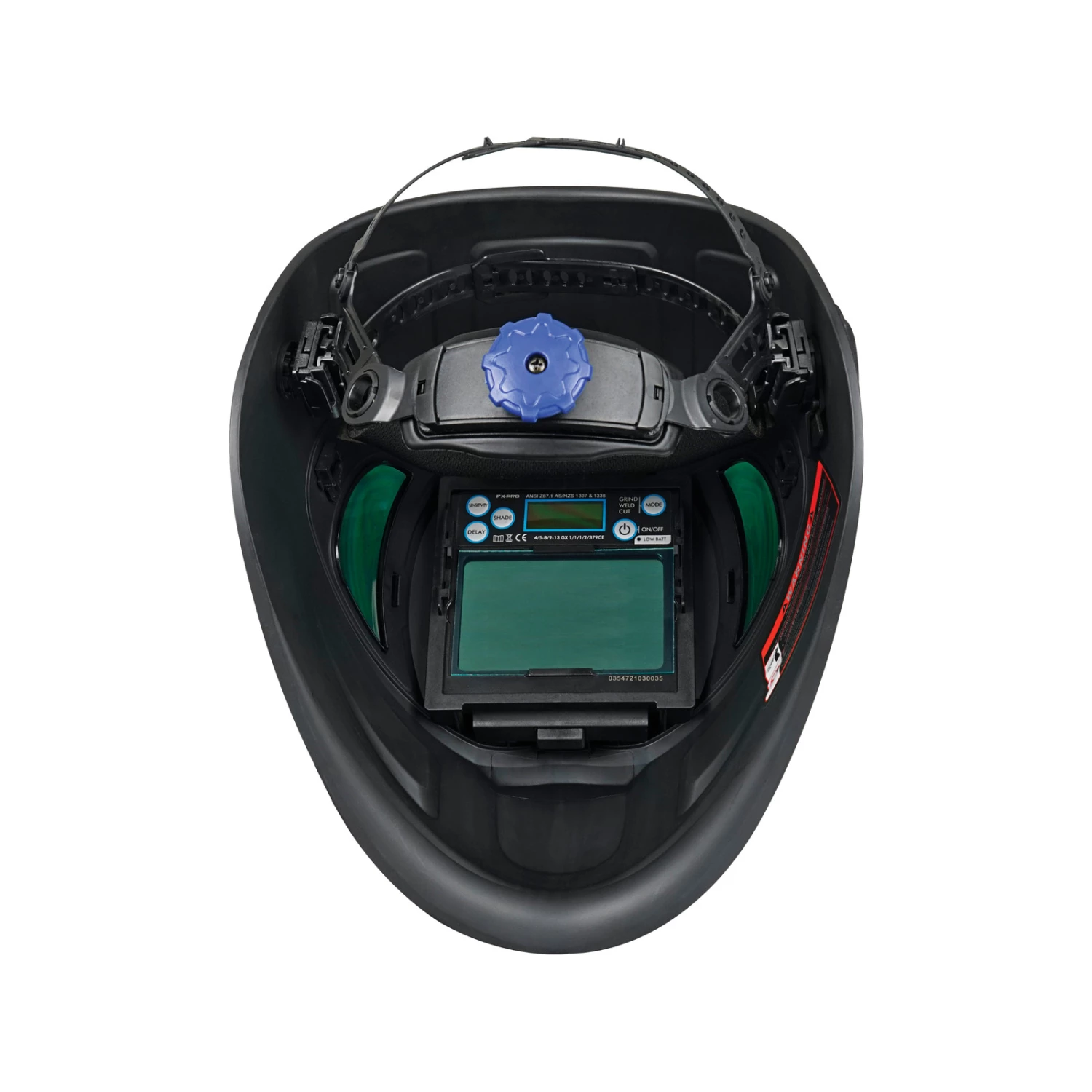 The FX Pro variable shade electronic welding helmet is expertly designed to provide protection to your eyes, neck and face from flash burn, ultraviolet and infrared light, sparks and heat while performing welding tasks. The helmet has 2 side view fixed shade 5 lenses and together with the front electronic lense gives the welder a panoramic view. Being a dual shade range helmet, it is suitable for MIG, Stick electrode, TIG welding, Plasma cutting and Brazing.